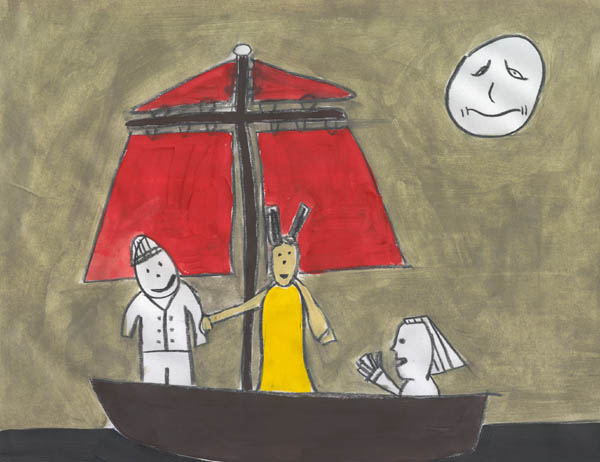 "Hey, what's wrong? Hello? Mr. Boat Man? You feel dead!"